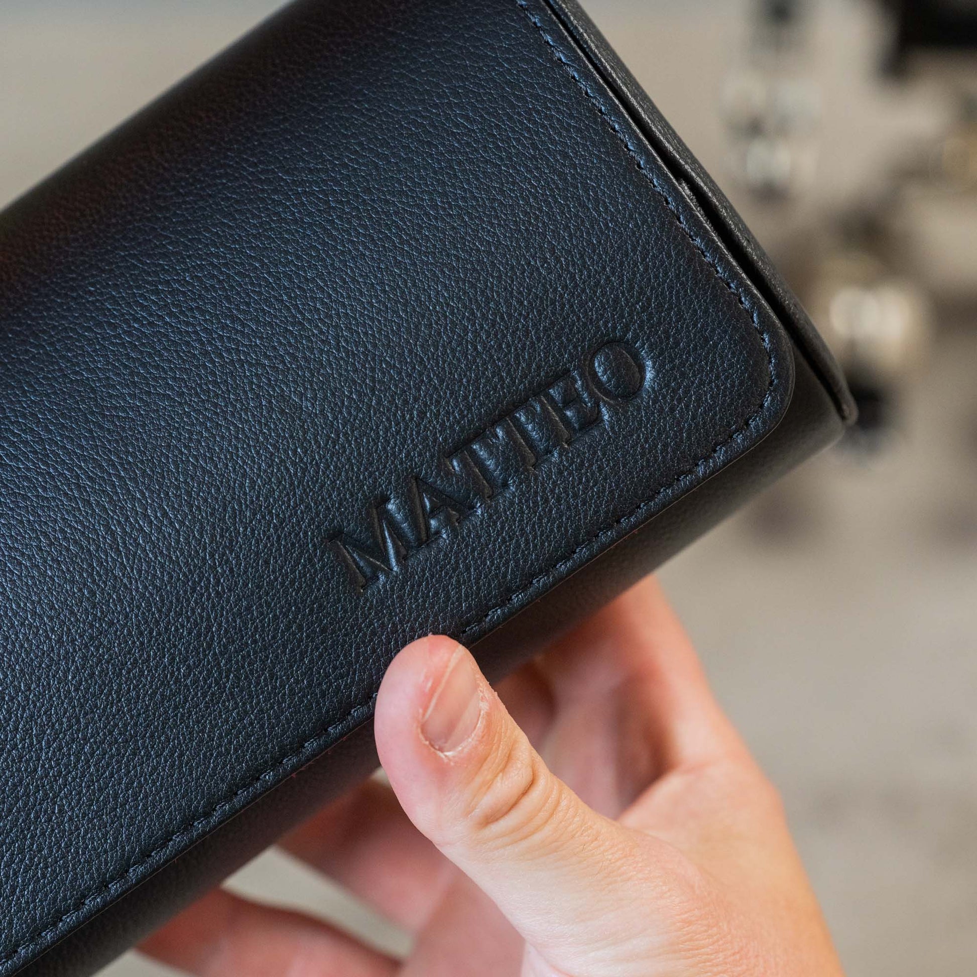 The Large Watch Roll is handmade of fine black genuine leather and holds up to three watches. The Watch Roll is ideal to carry your favourite watches with you on any occasion, or for daily storage.
