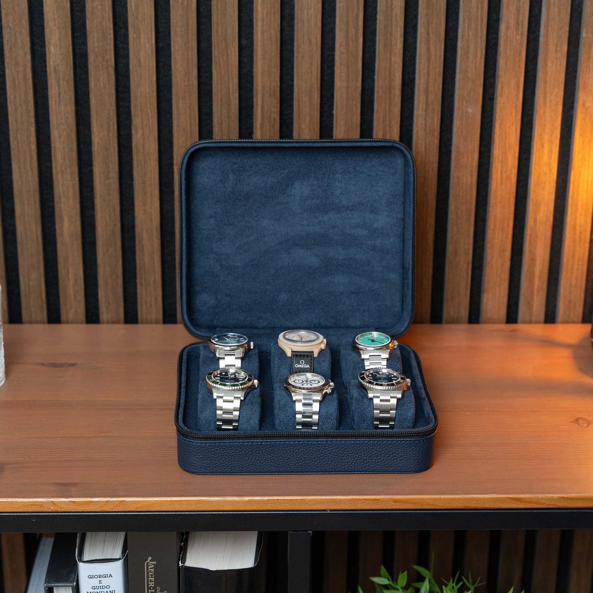 Square Watch Box 6 Slot - Navy Blue Litchi