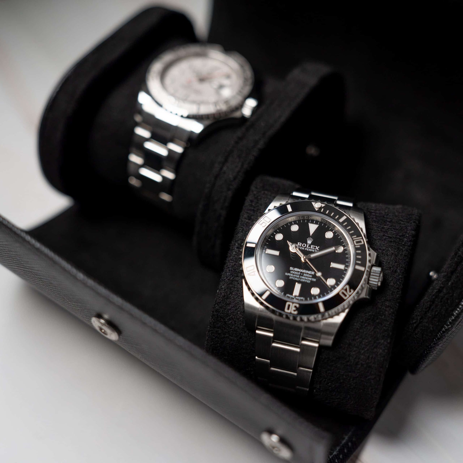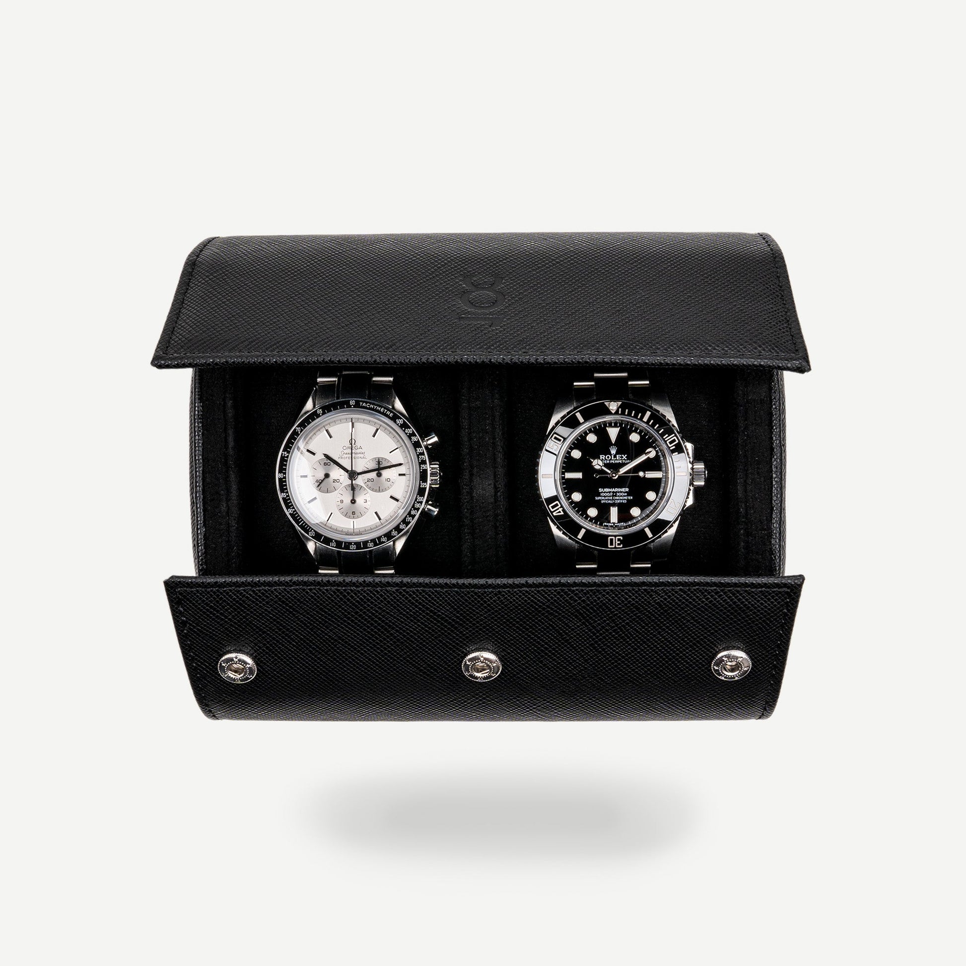 Two Slot Watch Roll - All Black Saffiano