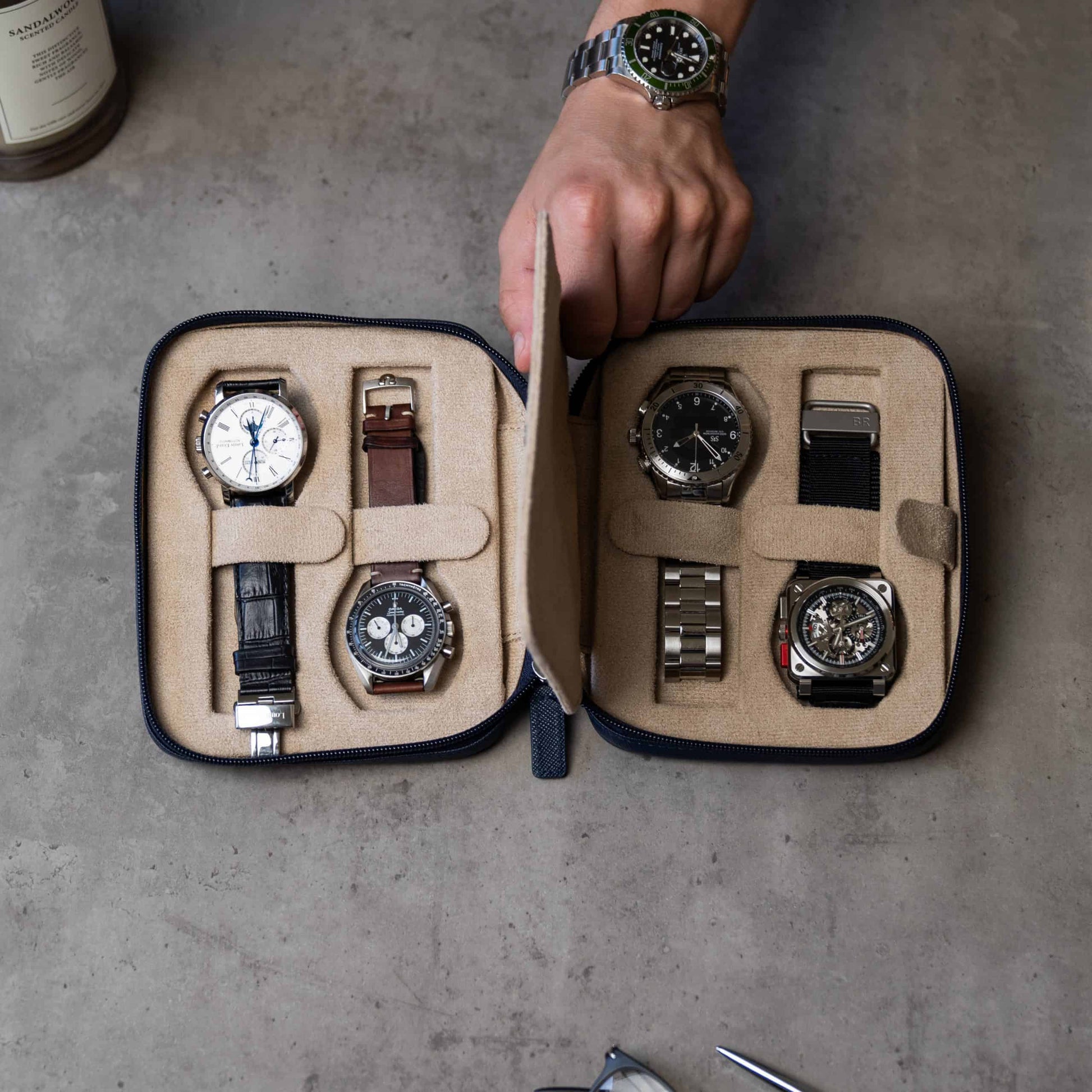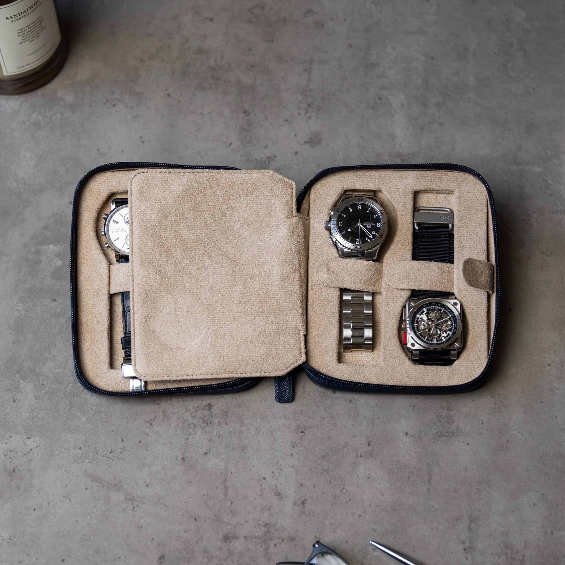 Watch Case For 4 Watches - Navy Blue